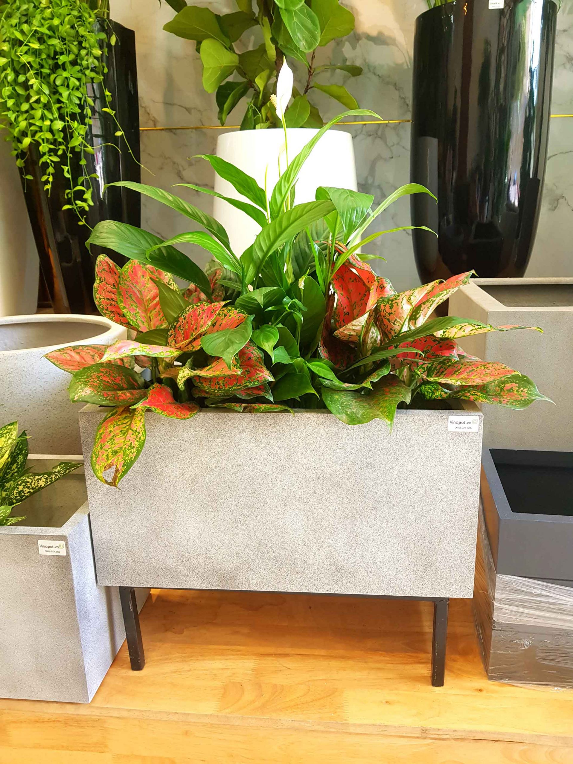 Ảnh thực tế chậu gỗ nhựa trơn Picowood đơn giản mà tinh tế của Vinapot