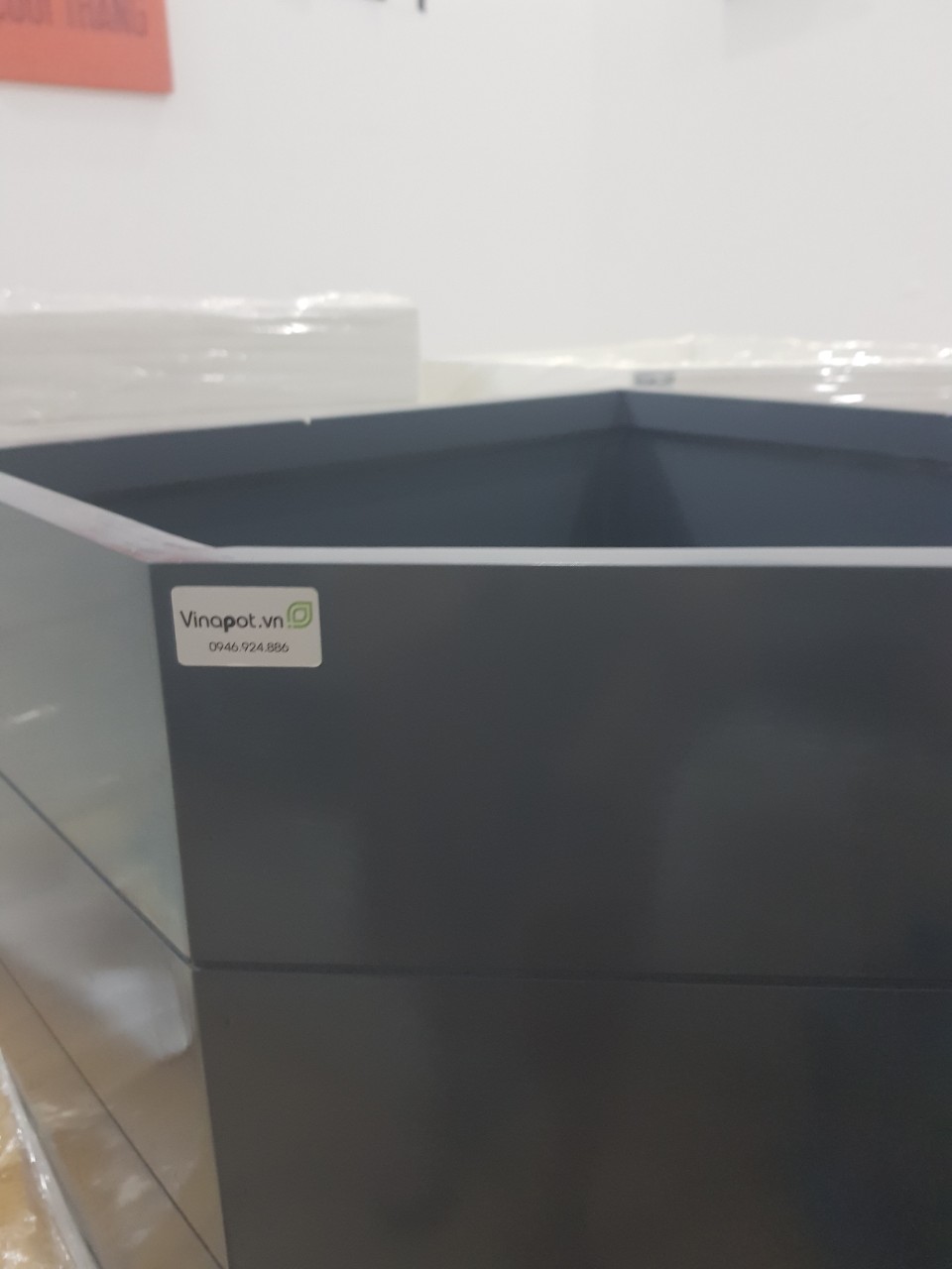 Ảnh thực tế chậu gỗ nhựa vát góc composite