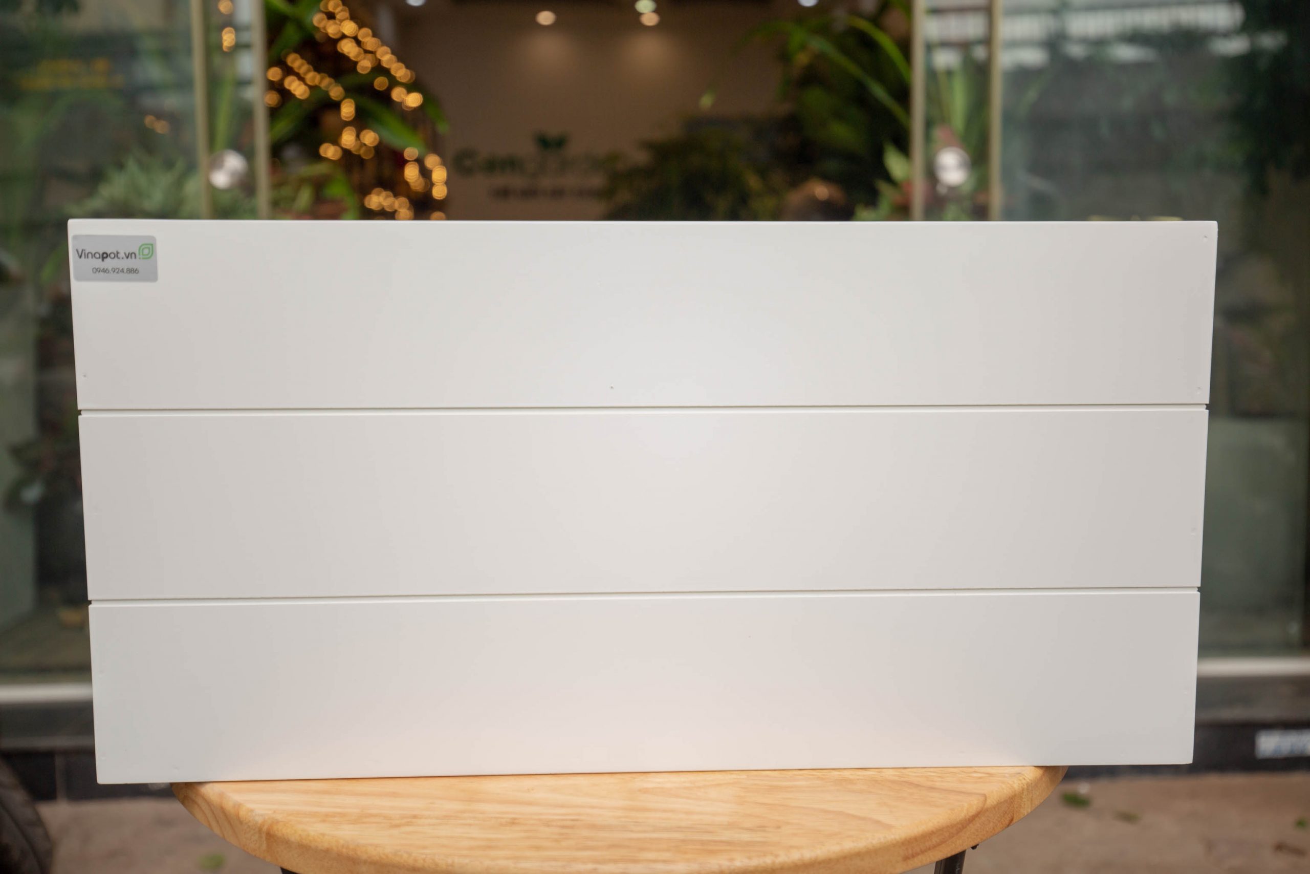Ảnh thực tế chậu gỗ nhựa kẻ chỉ Picowood thiết kế hiện đại, tối giản của Vinapot